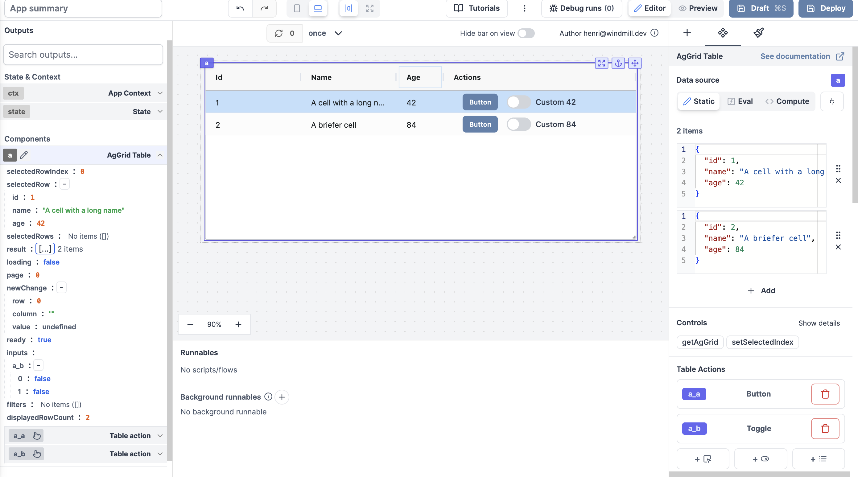 Introducing the Database studio, a web-based database management tool that leverages Ag Grid for table display and interaction. In apps, interaction with database content made easy; from a SQL resource, display, edit, add rows, delete rows ... and connect to other components.