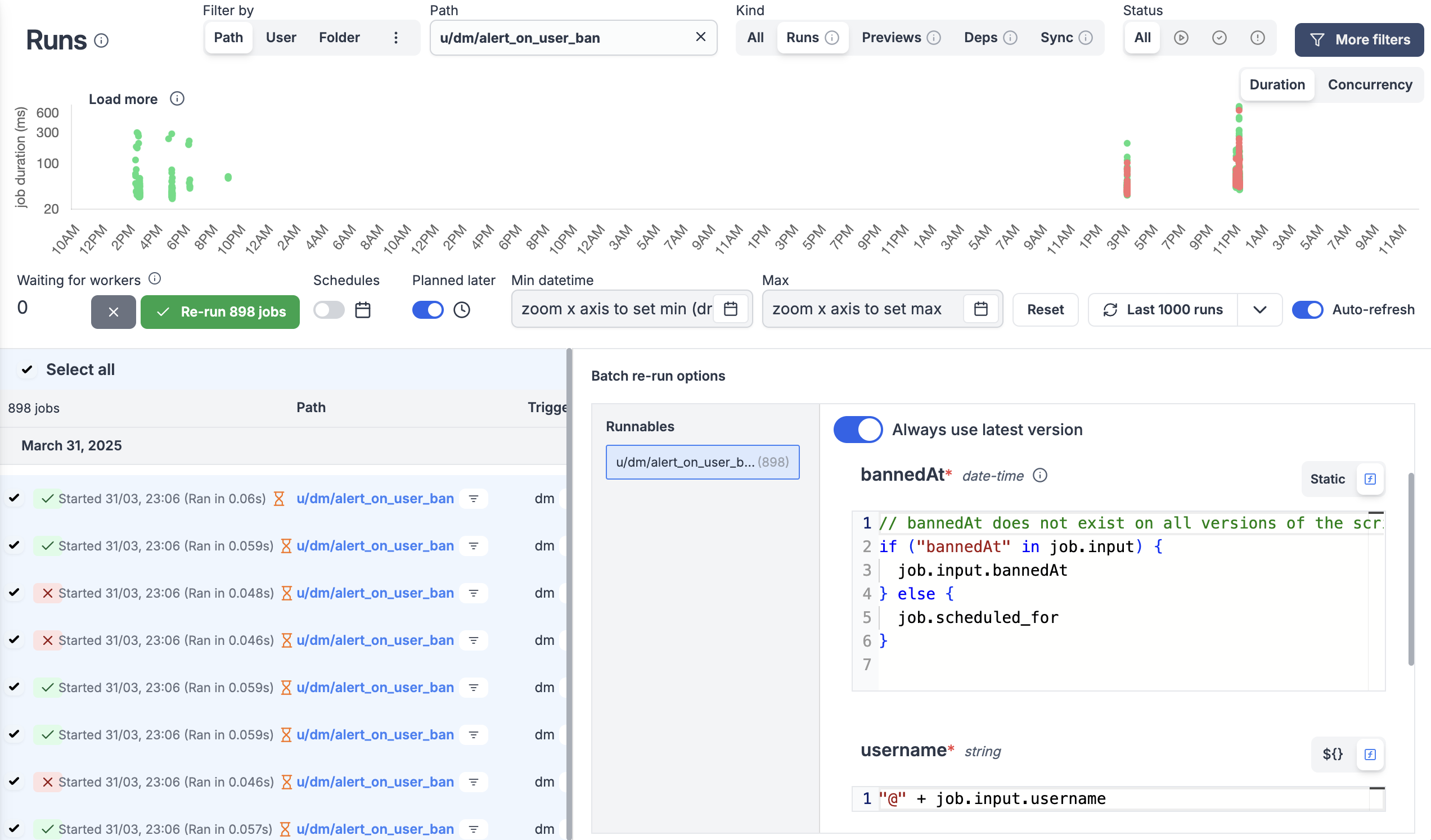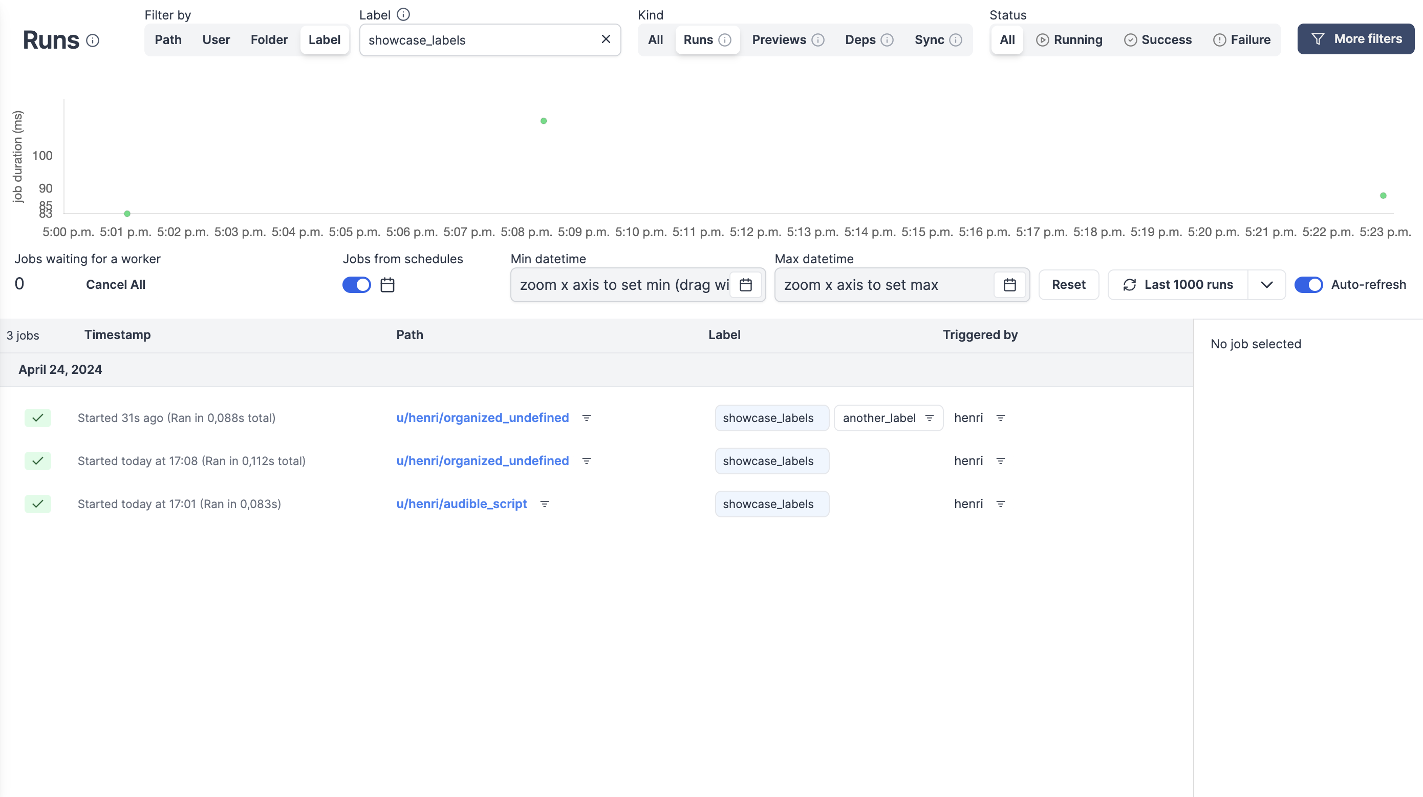 • Skipped runs are marked as success with skipped flag