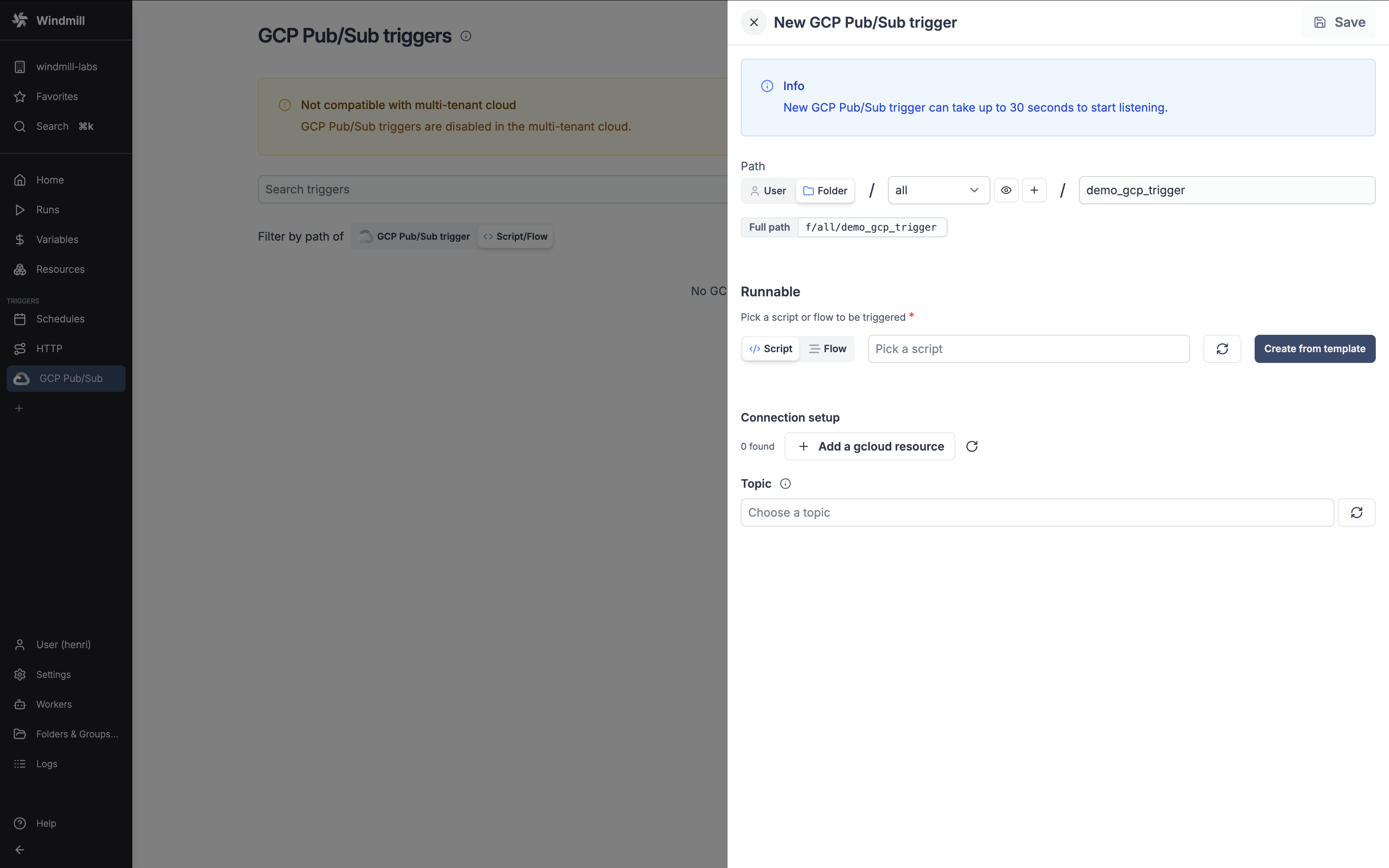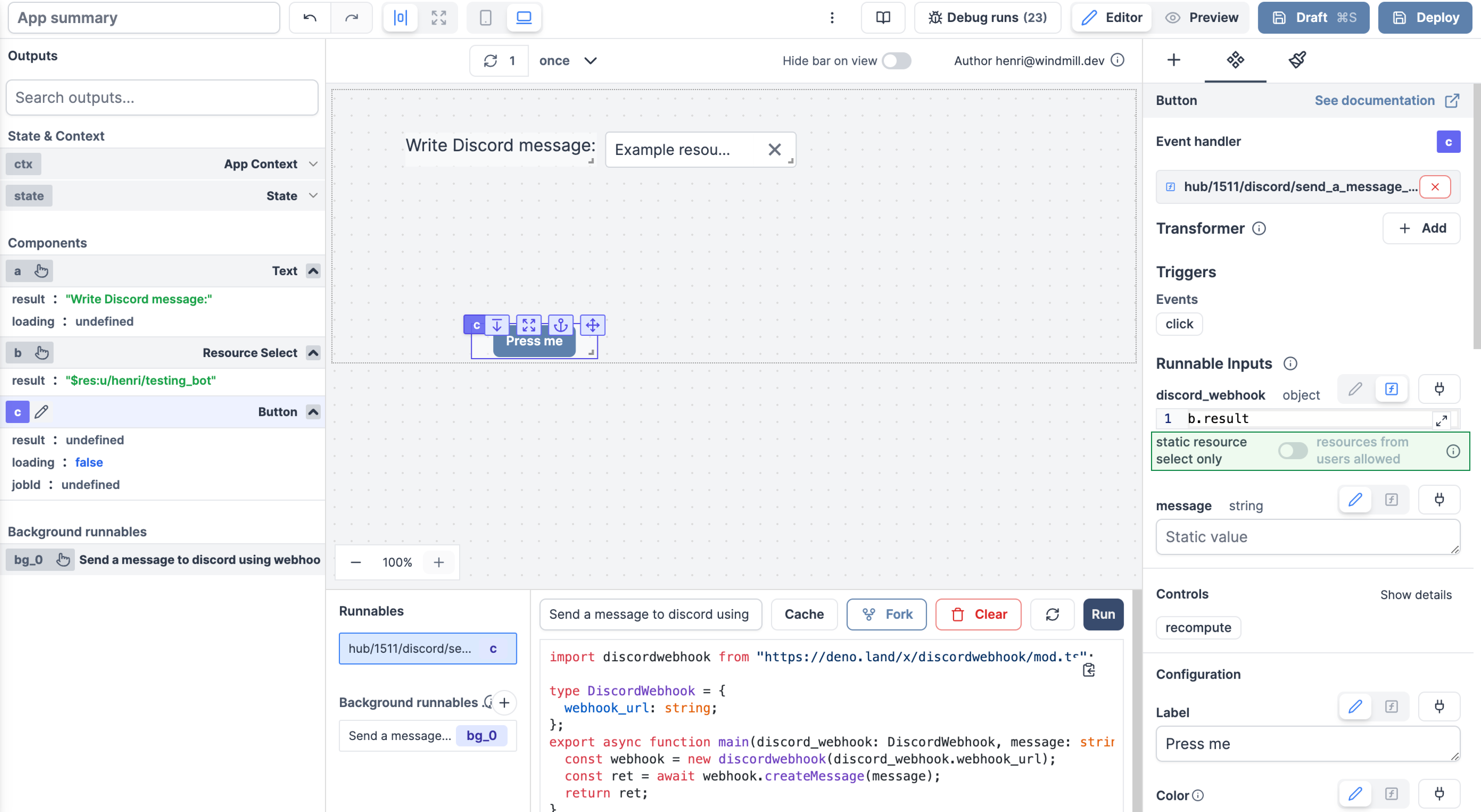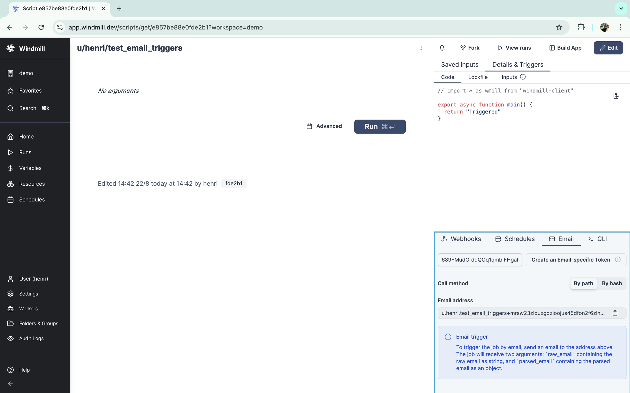 • Trigger scripts with @Windmill in public channels, private channels, DMs, and threads