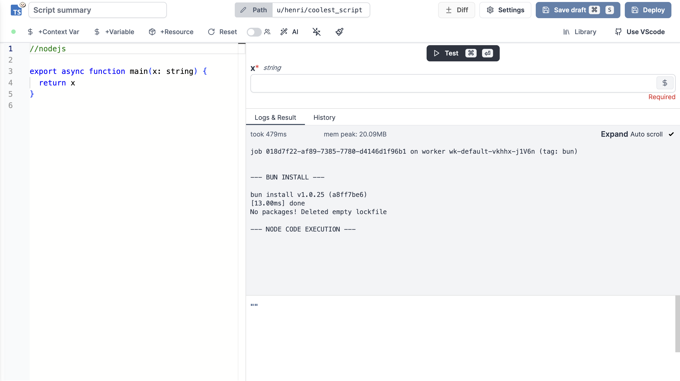 Windmill provides a true NodeJS compatibility mode using Bun. This means that you can run your existing NodeJS code without any modifications. Only comment //nodejs on the first line of your Bun script.