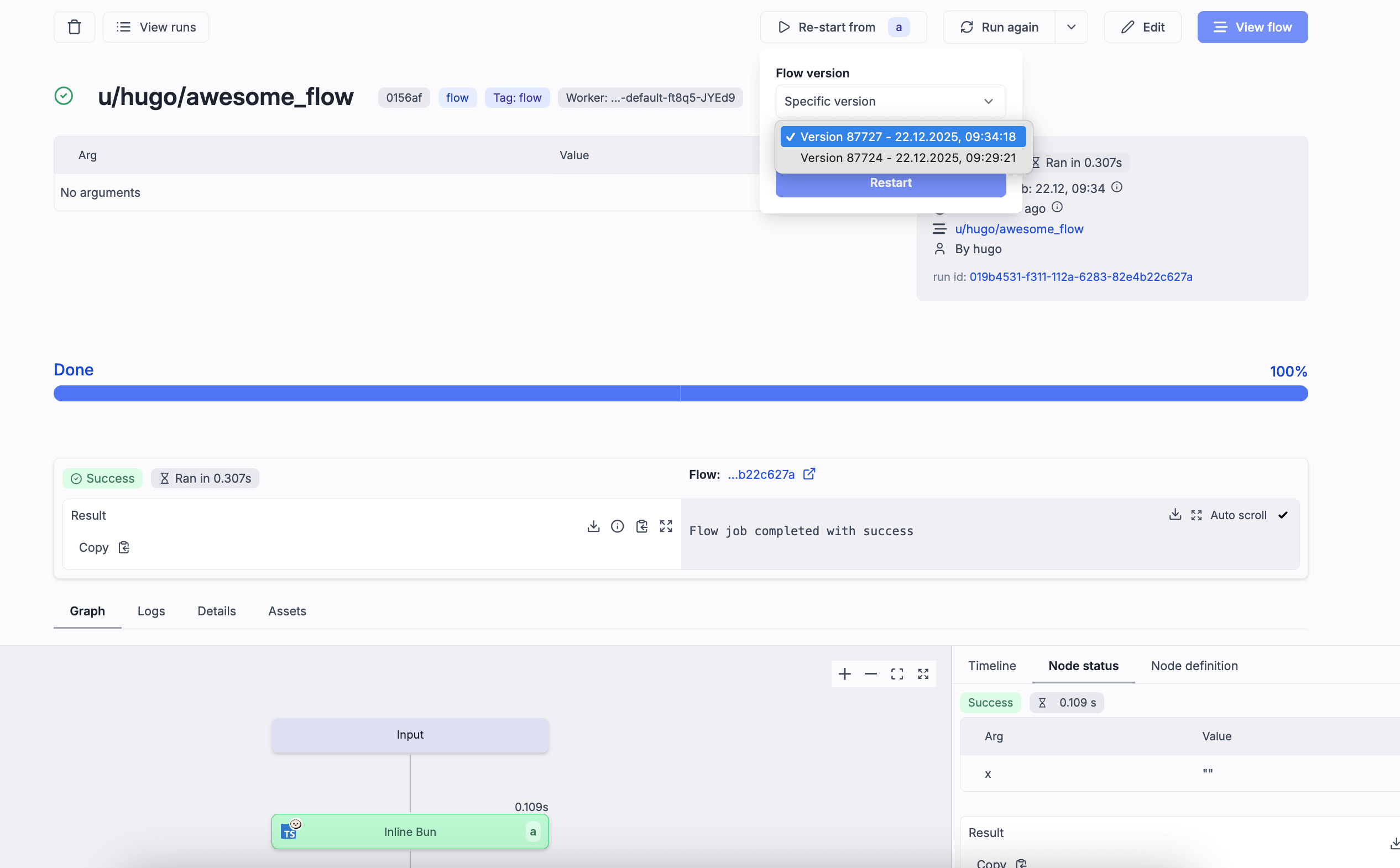 • Select any deployed flow version when restarting