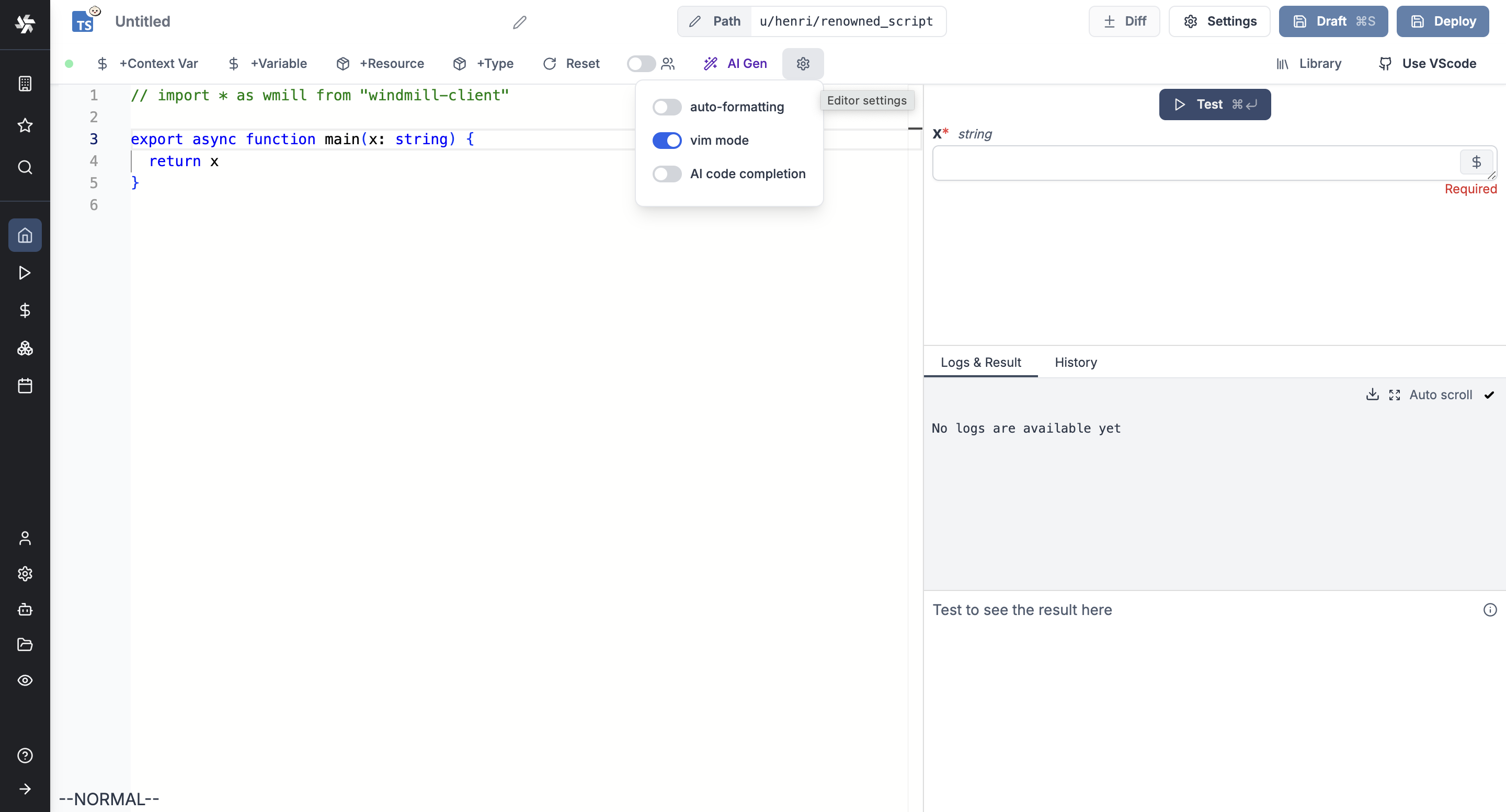 Windmill AIFlow editorScript editorv1.270.0